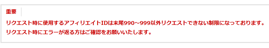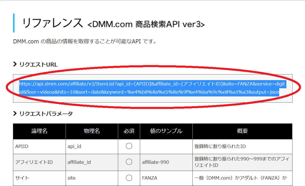 ポイントはapi_id=[APIID]&affiliate_id=[アフィリエイトID]のカッコは要らないということ