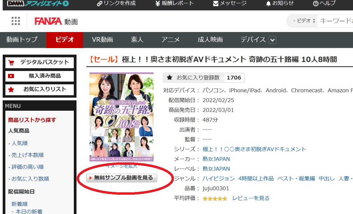 エログの場合、重要なのはジャンルとサンプル動画をです。