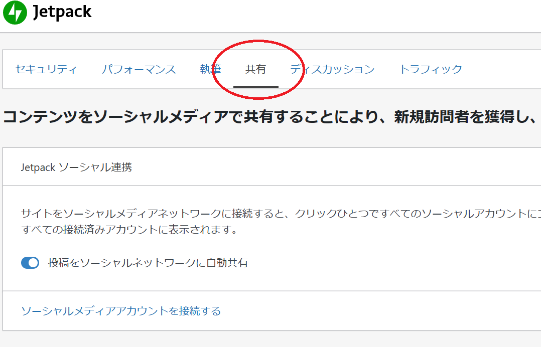Jetpackと検索/インストール/有効化/設定画面を開きます