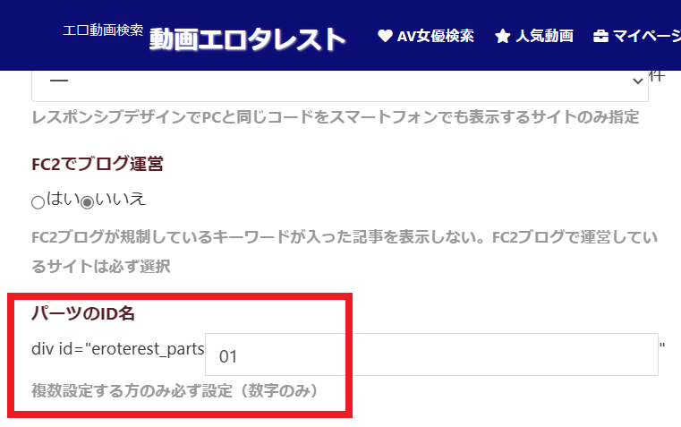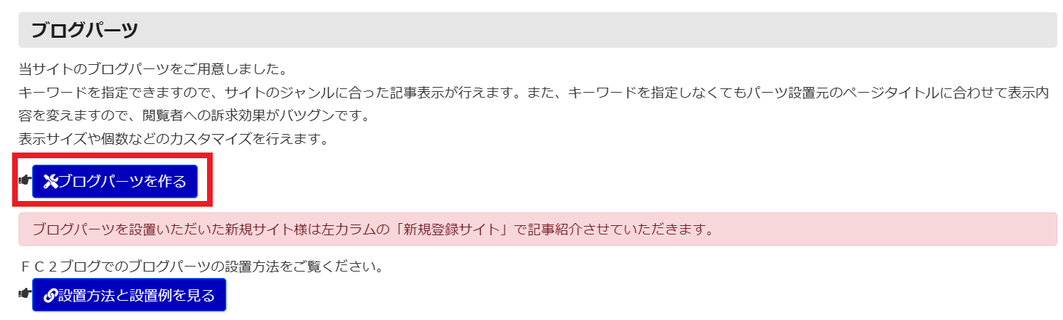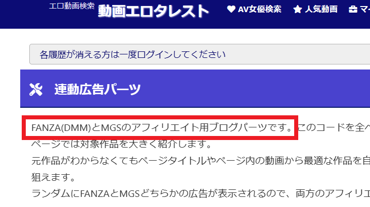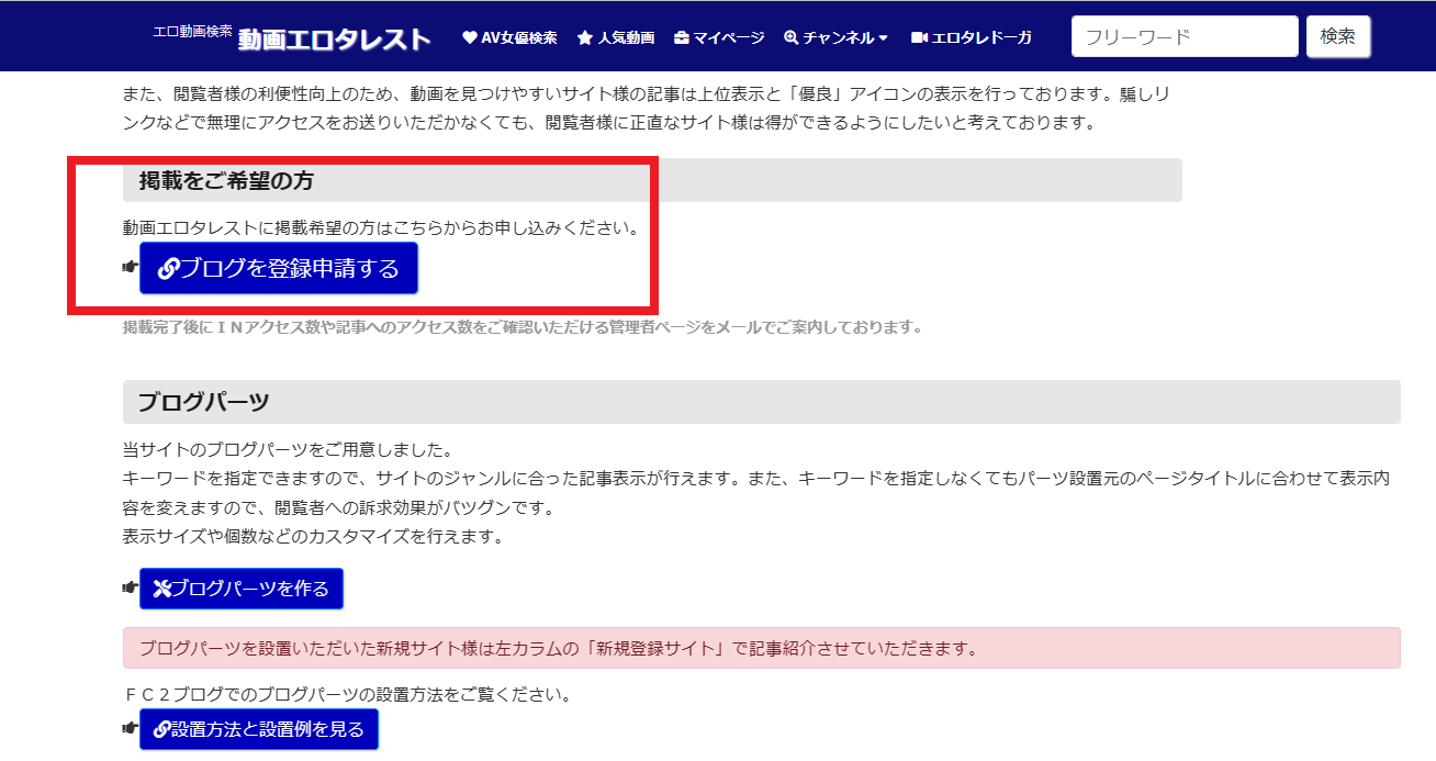 エロタレストに登録するにはエロタレスト指定のブログパーツを設置する必要があります。