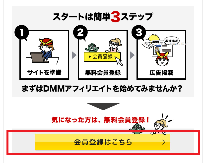 DMM アフィリエイト登録からFANZAに登録していきます。