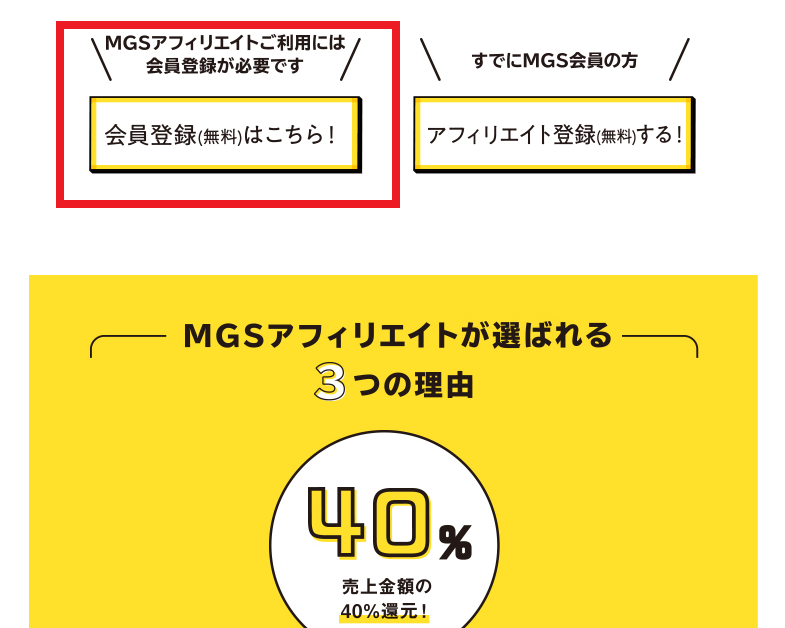 MSGのアフィリエイト登録も流れは一緒なので登録していきます。