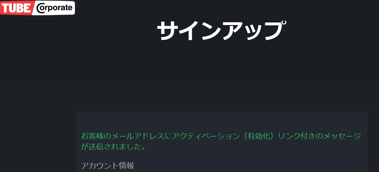 サインアップが完了すると以下の画面に代わり、登録メールアドレスにメールが届きます。