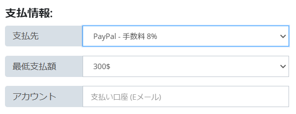 ダッシュボード→お支払い→決済システムの選択→支払先から選択します。