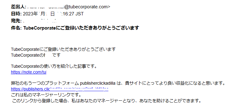登録を済ませると、翌日位に以下のようなメールが来ます。
