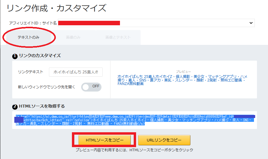 7-3.埋め込みコードをコピー(濃い青の部分に自分のアフィリエイトIDが反映されていることを確認してください)