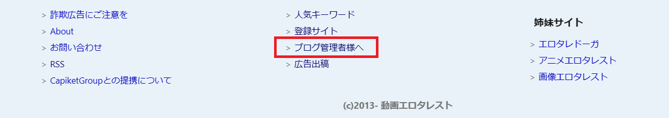 エロタレスト公式サイトに行きページ最下部「ブログ管理者様へ」をクリック。