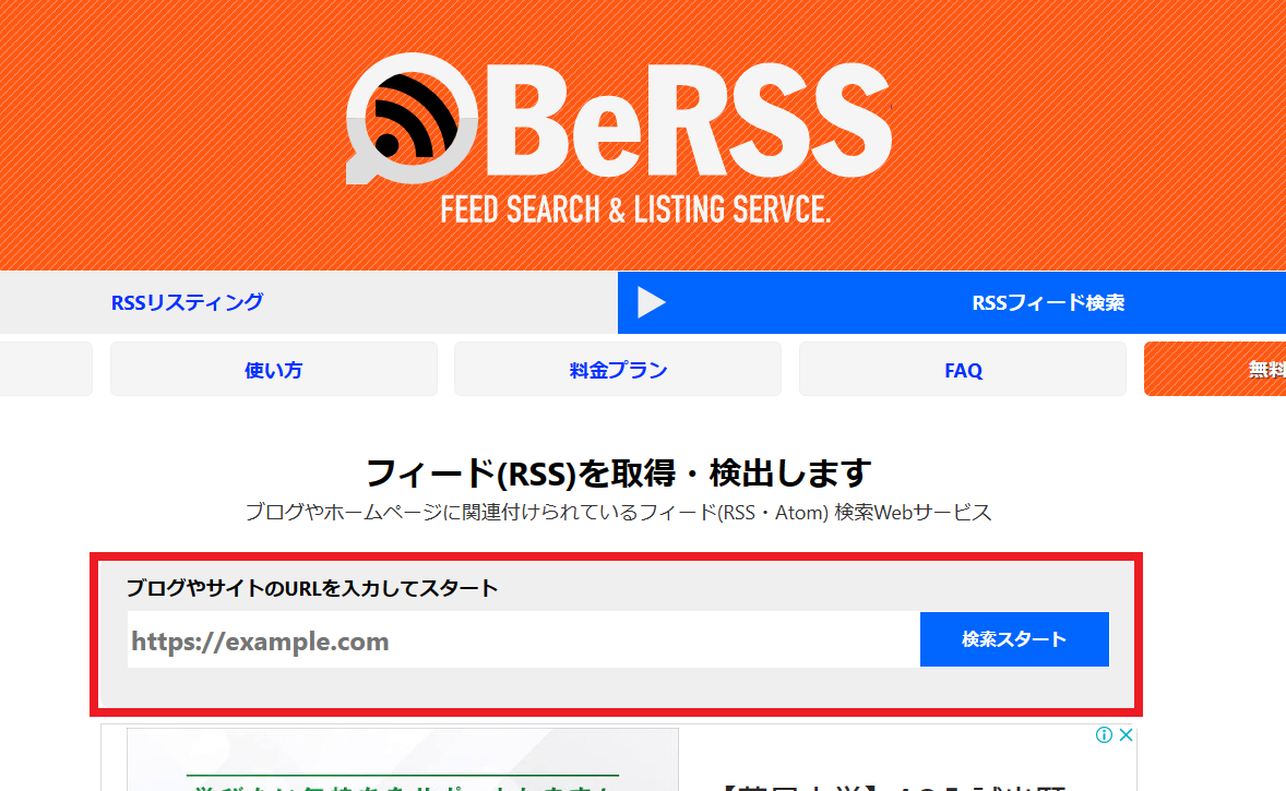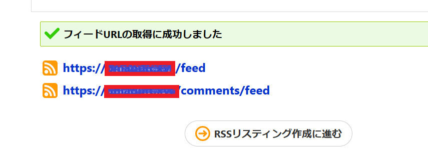 先程のRSSで取得したURLを黄色の〇の箇所に貼り