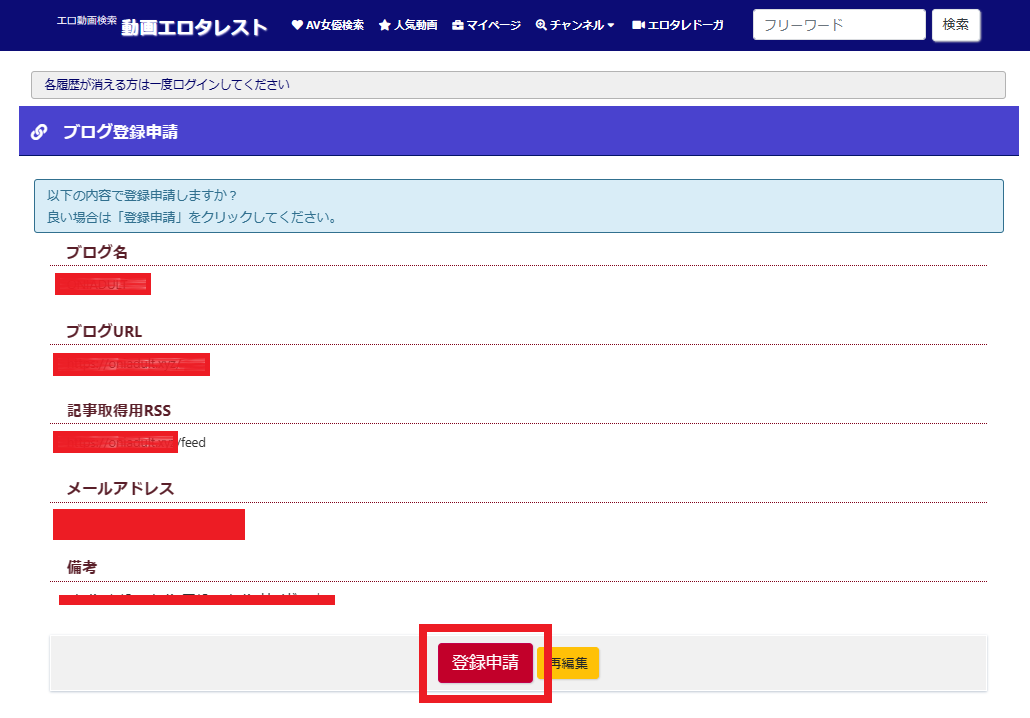 エロタレストに登録するには自分のエログを持っていることが必須事項です。